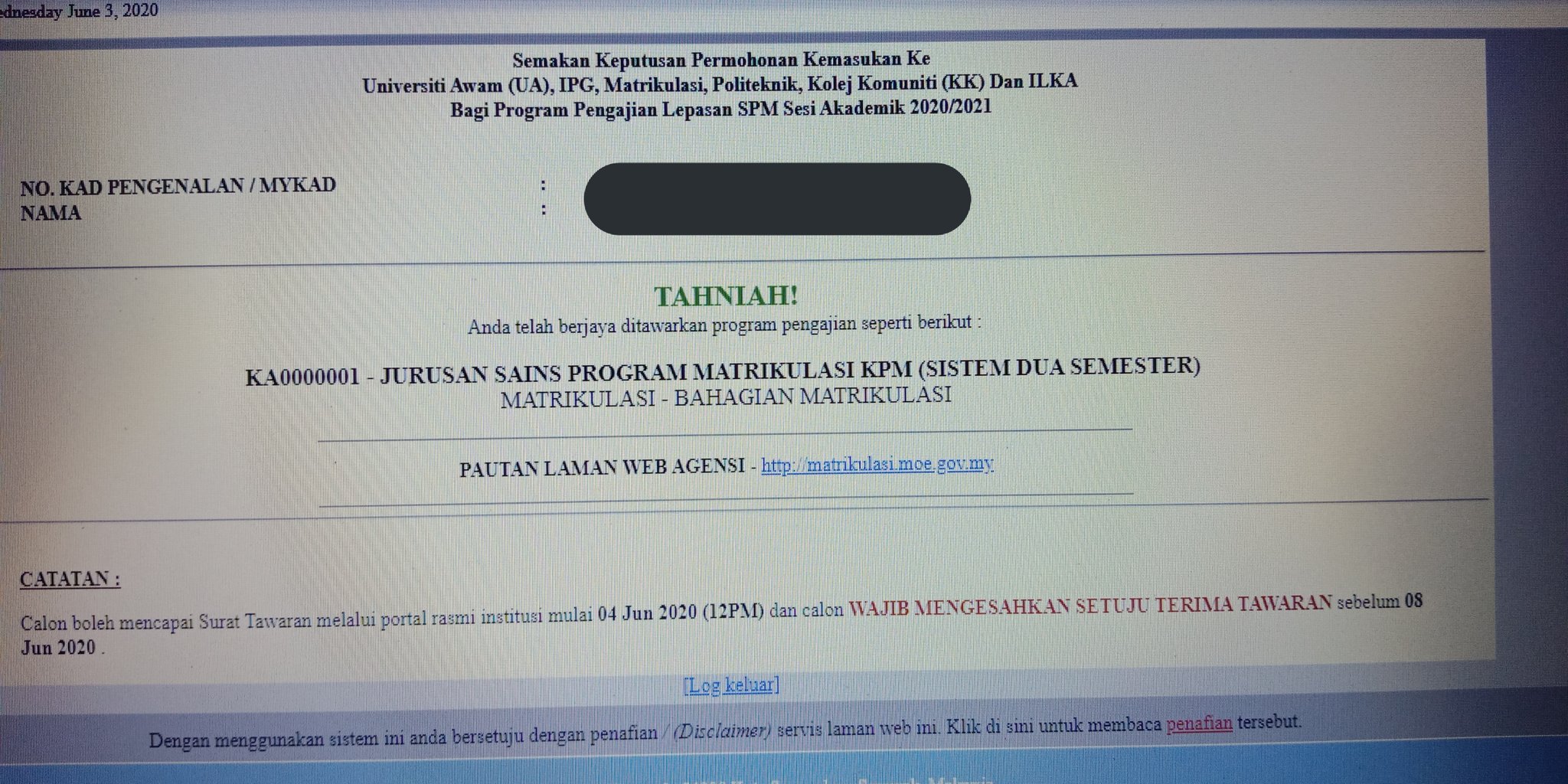 Makluman Mengenai Seksyen Pendidikan Berterusan Facebook. Hebahan Keputusan di httpsjptunimasmy mulai jam 12 tengah hari Semakan surat tawaran boleh dibuat pada 20 September 2021 mulai jam 200 petang 15 September 2021. Surat tawaran laman permohonan online kpj university college.